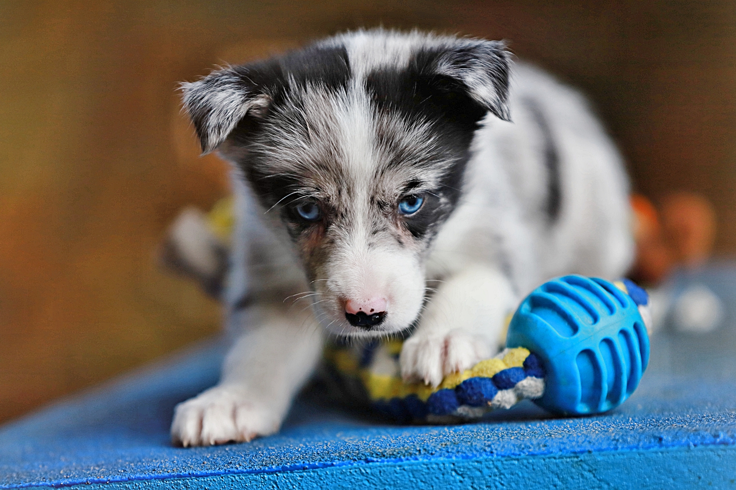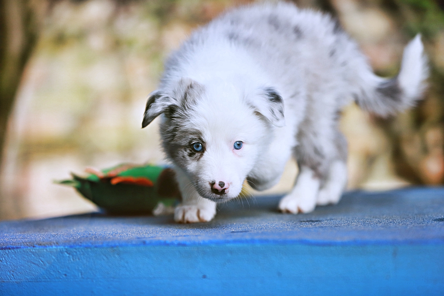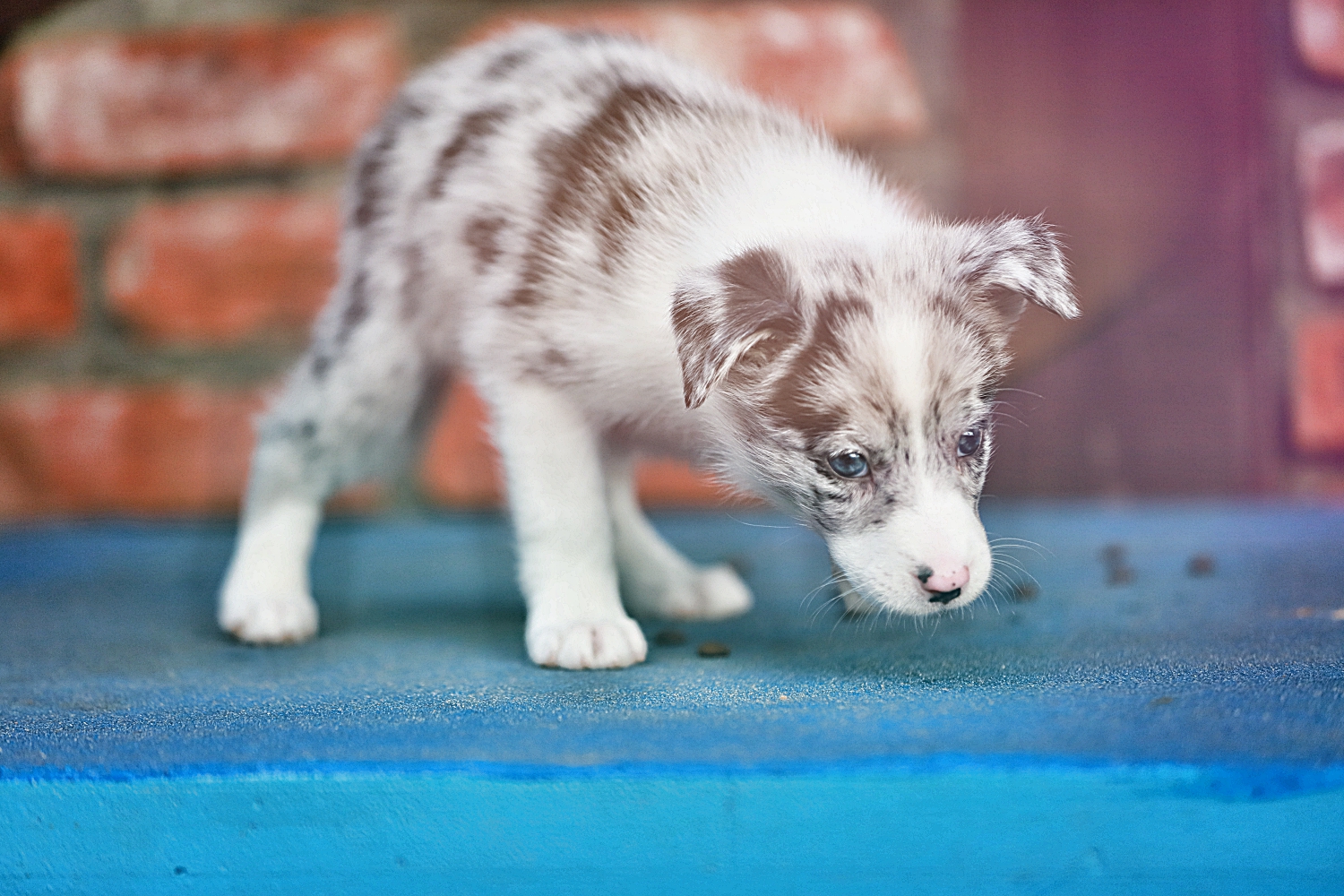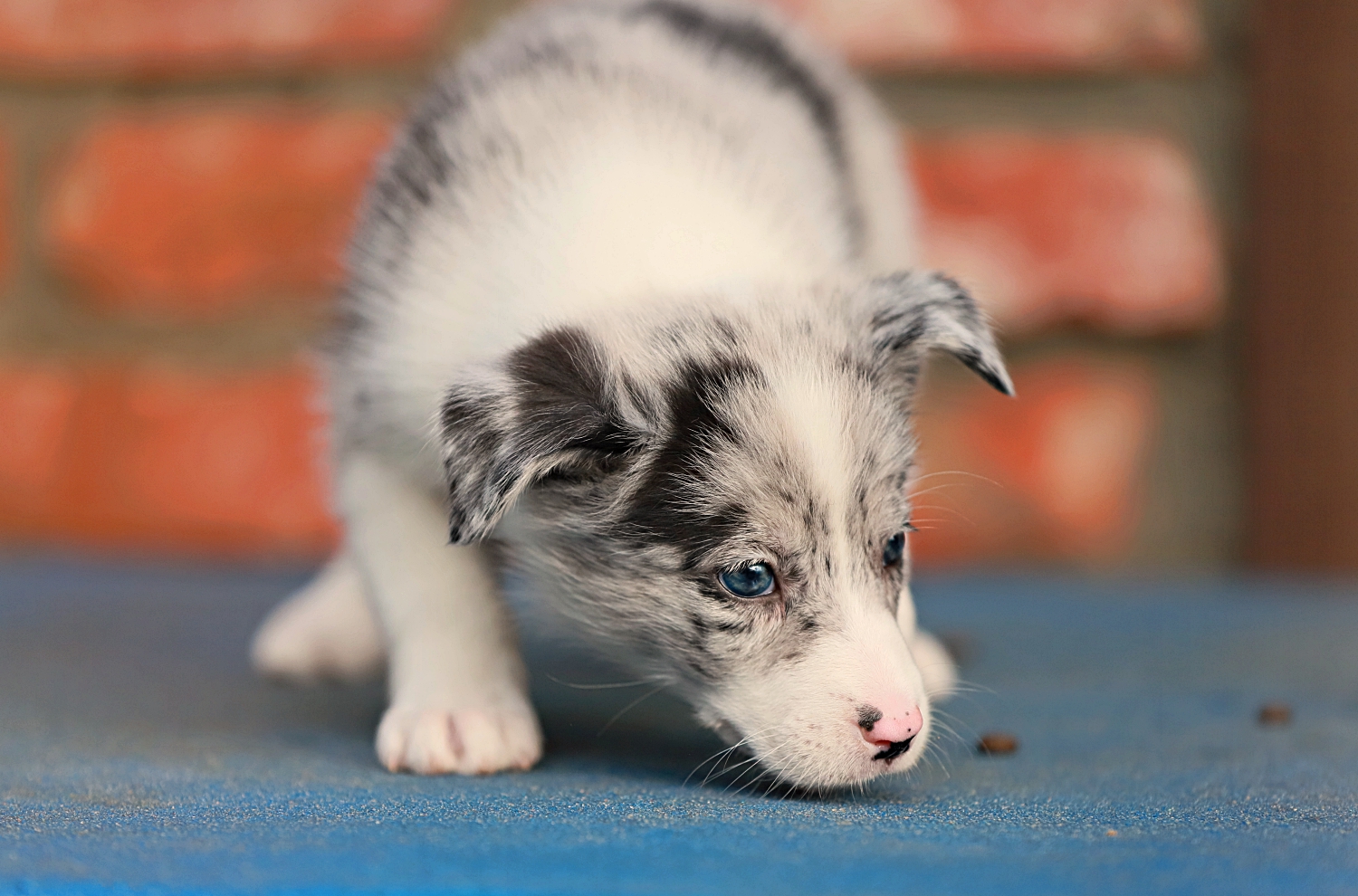 Jeszcze tylko jeden piesek szuka domu. Jest to piesek z miotu Żelki i Bosco – chłopak blue merle.