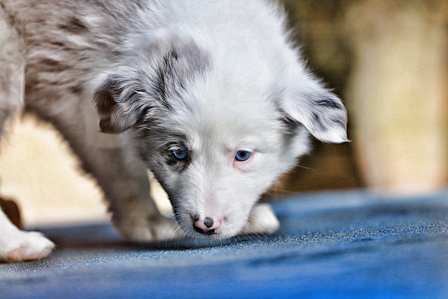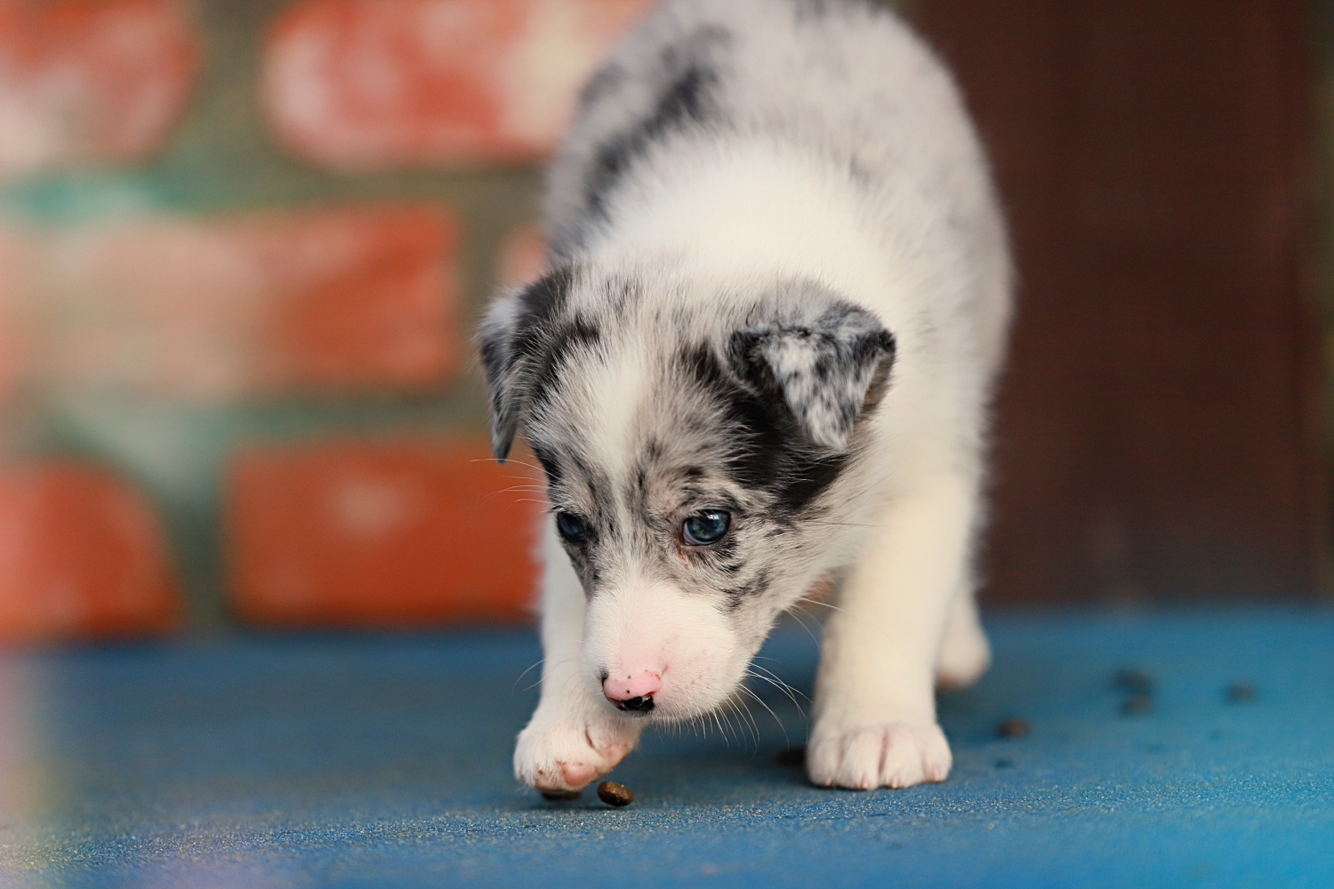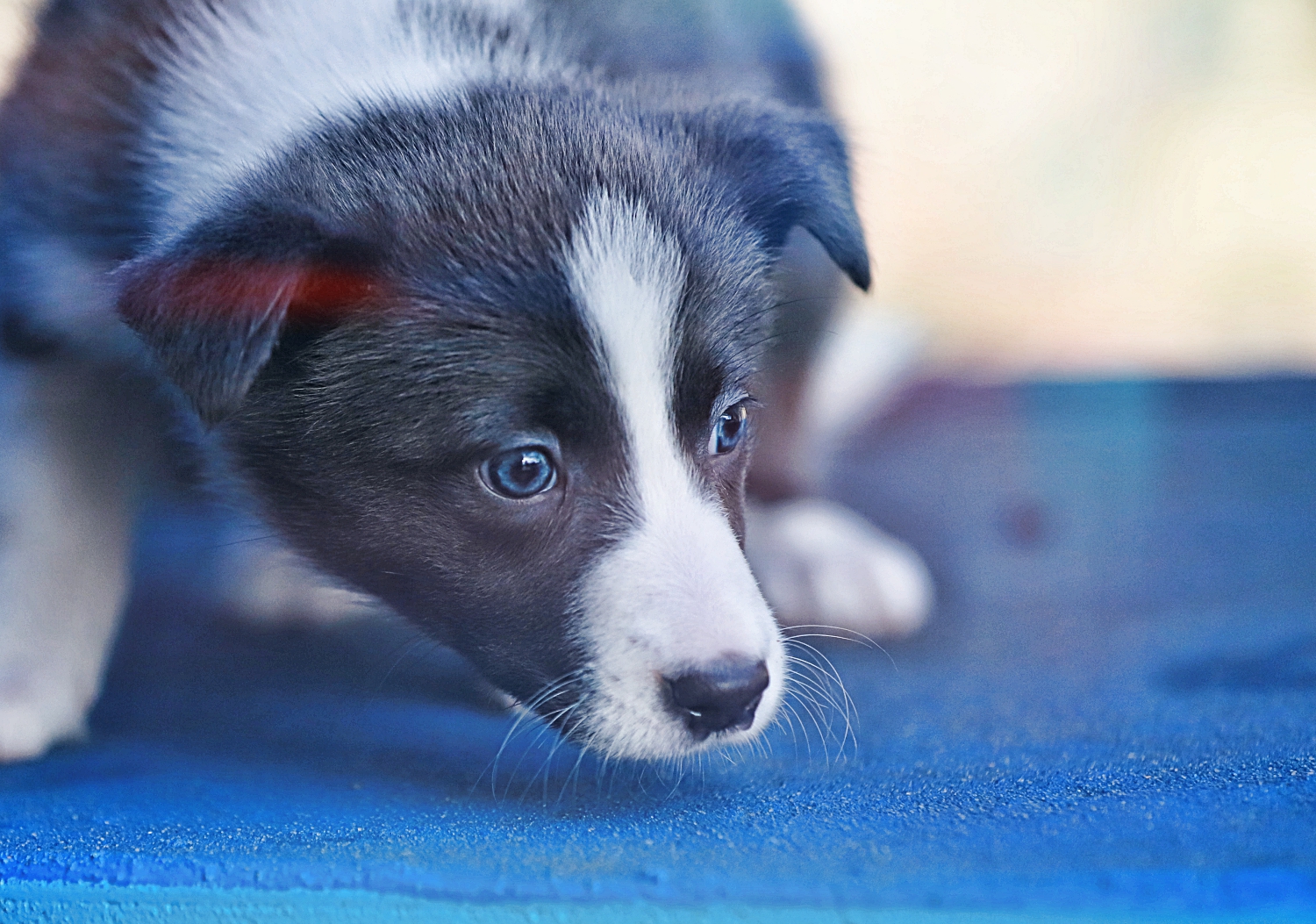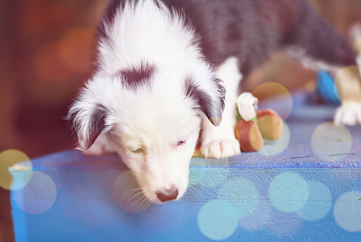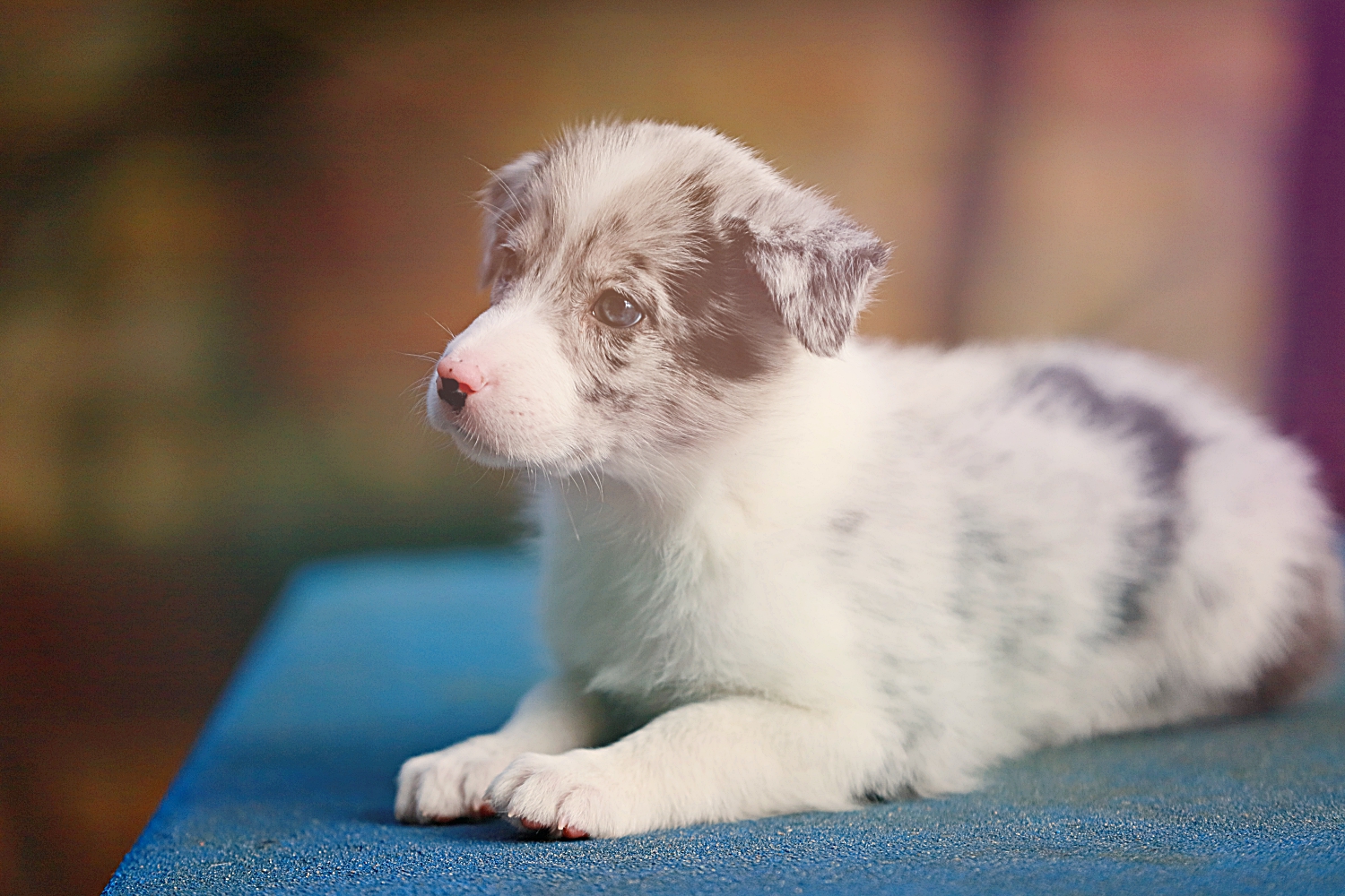 Jeszcze tylko jeden piesek szuka domu. Jest to piesek z miotu Żelki i Bosco – chłopak blue merle.