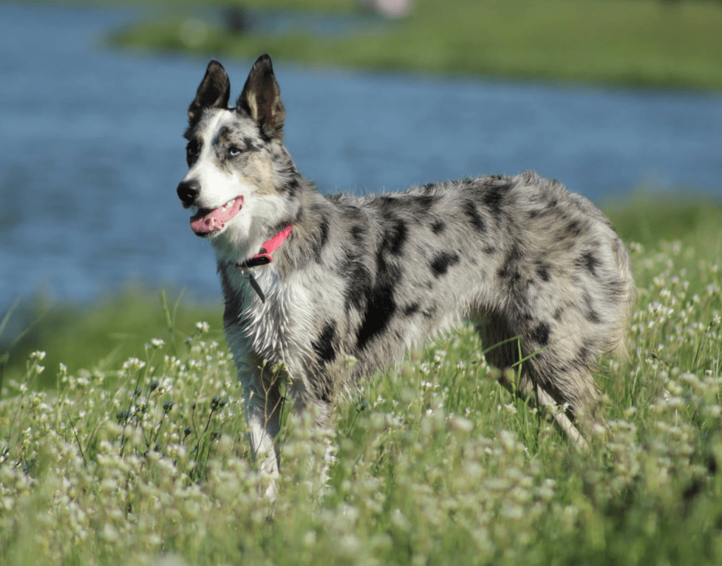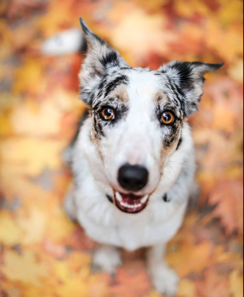 w tym dwa szczenięta o umaszczeniu tri merle i pięć o umaszczeniu czarny trikolor