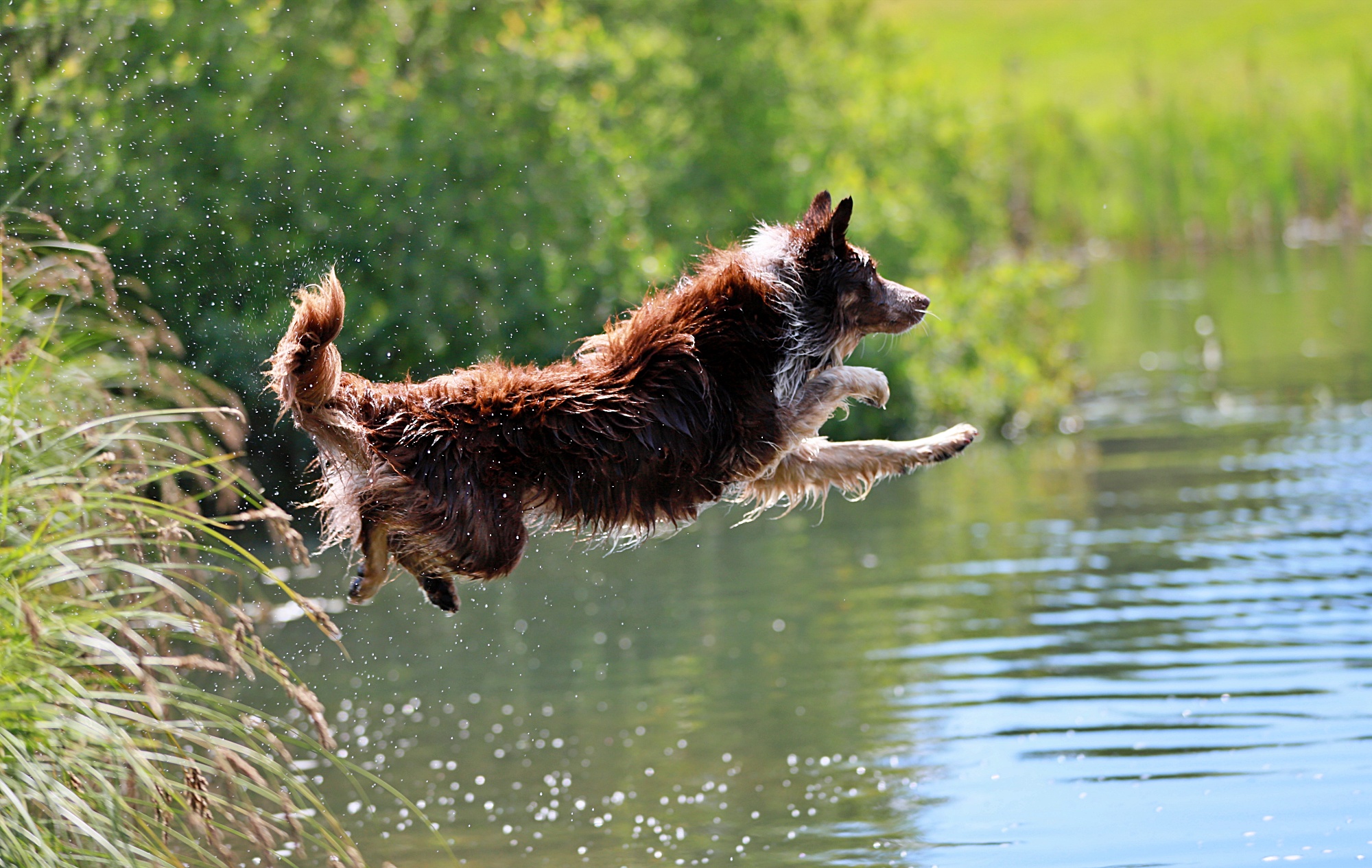 Ma naturalny aport. Świetnie skacze, w tym do wody.