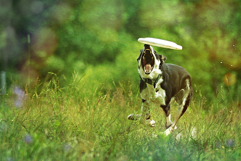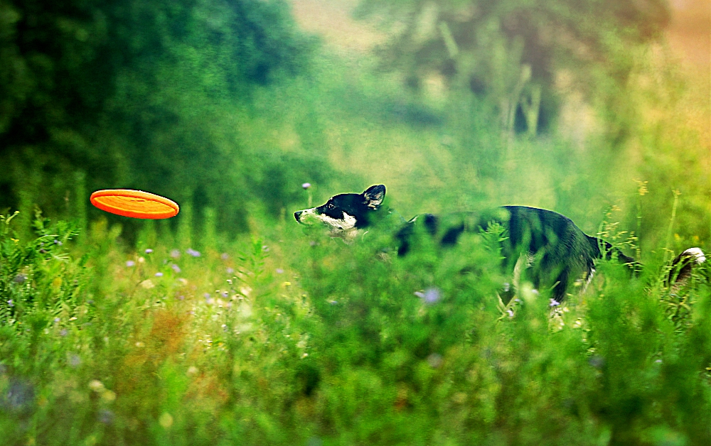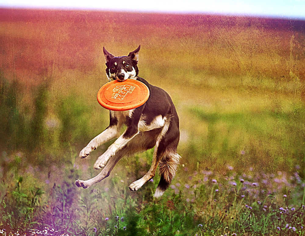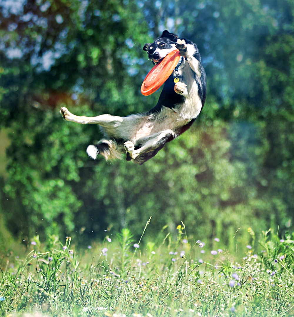 Frisbee – pies guma, jak jej ojciec. Odziedziczyła po nim sprężystość, technikę skoku i pasję. Kocham wyjść na łąkę i porzucać jej te dekle..niesamowicie odprężające i optimistyczne chwile.