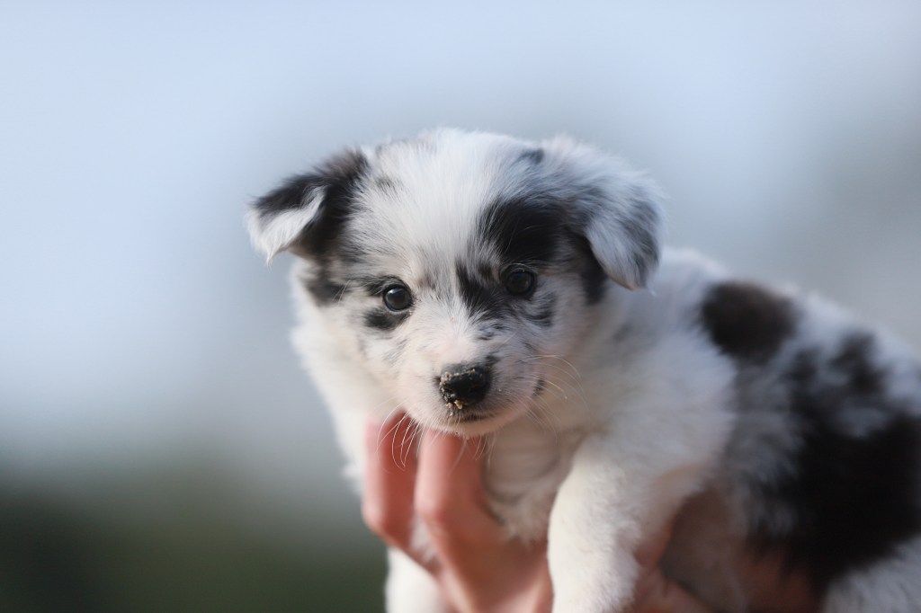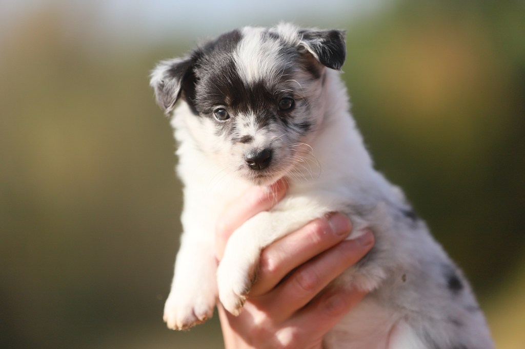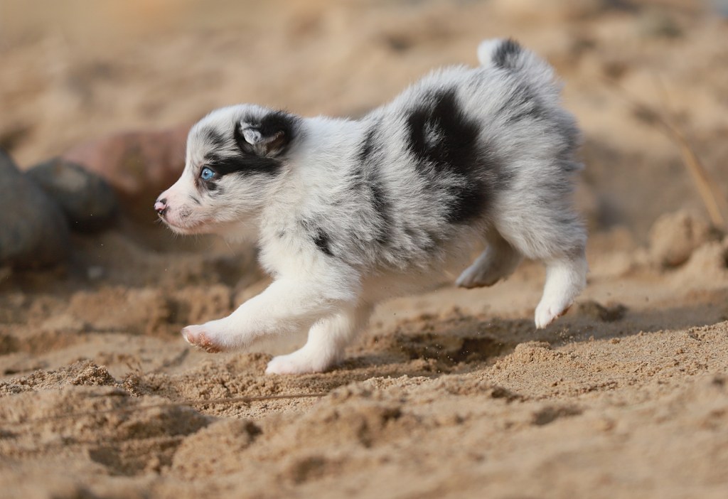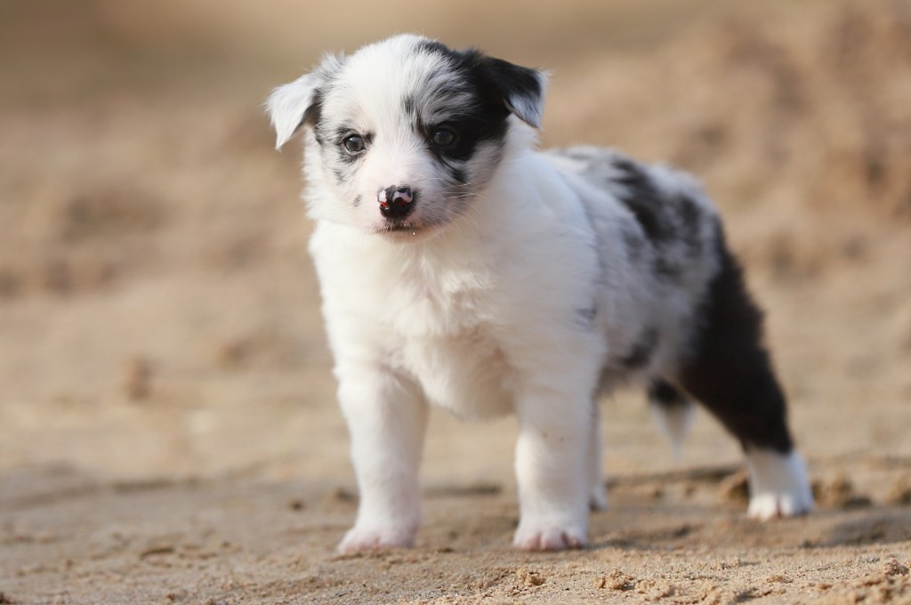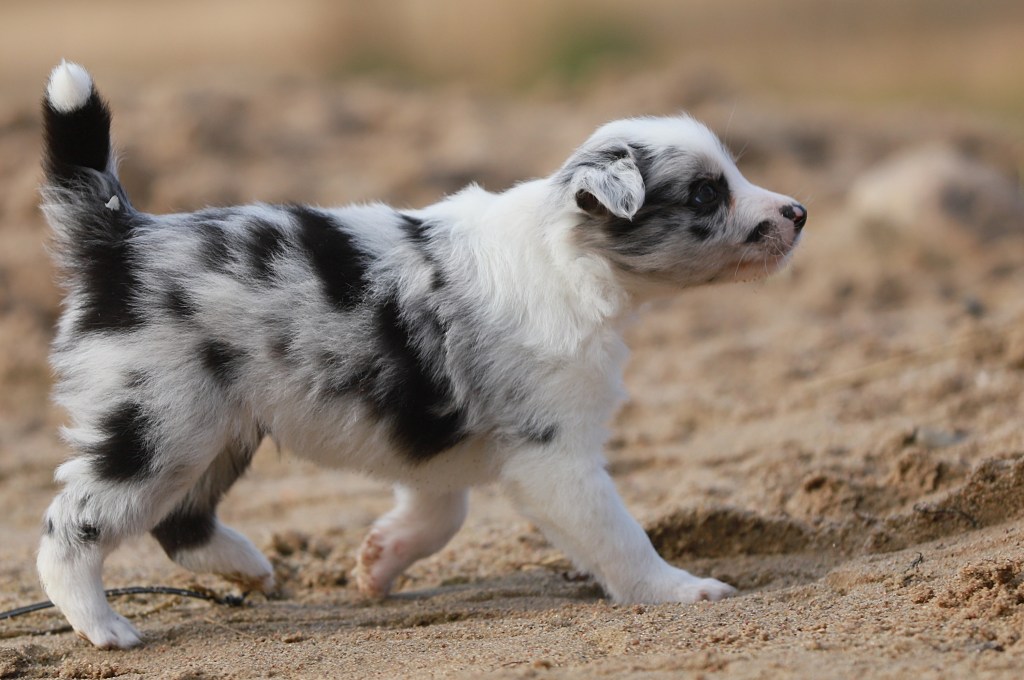 Spodziewane umaszczenia: czarno białe i blue merle. Długość włosa: długie/ średnie