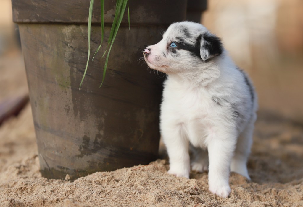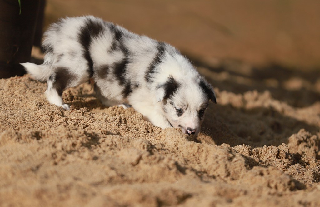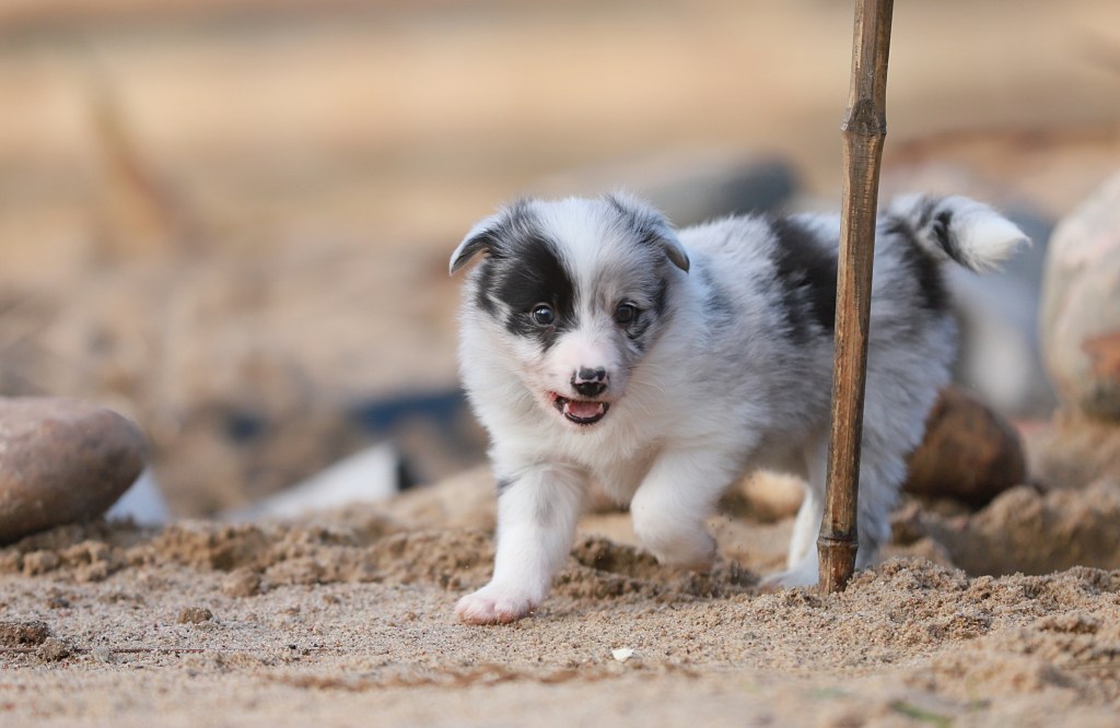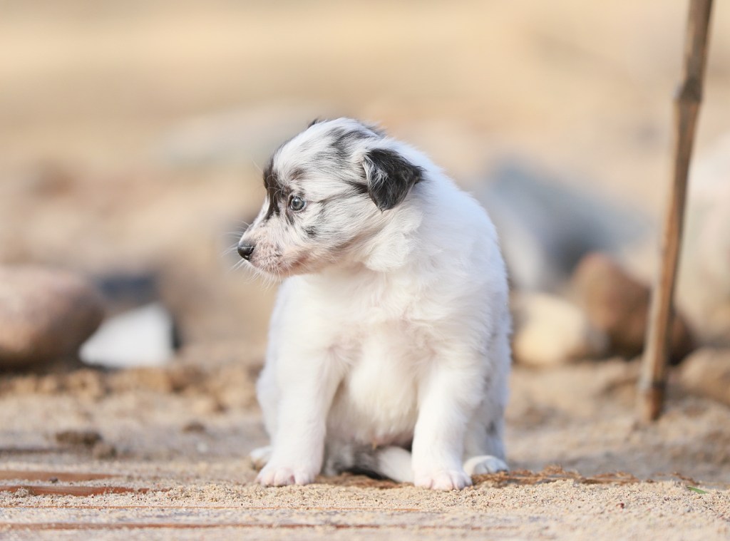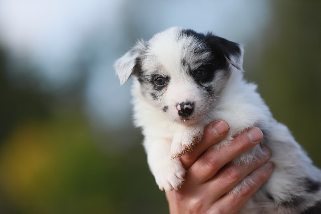Spodziewane umaszczenia: czarno białe i blue merle. Długość włosa: długie/ średnie