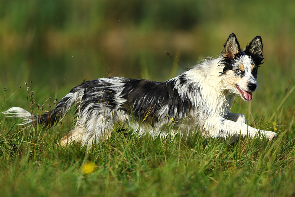 Yoga wybitnie pływa. pierwszy raz wskoczyła do wody jak miała 8 tygodni i przepłynęła prawie cały staw. Tak jej zostało. Mogłaby całe lato przesiedzieć w wodzie.