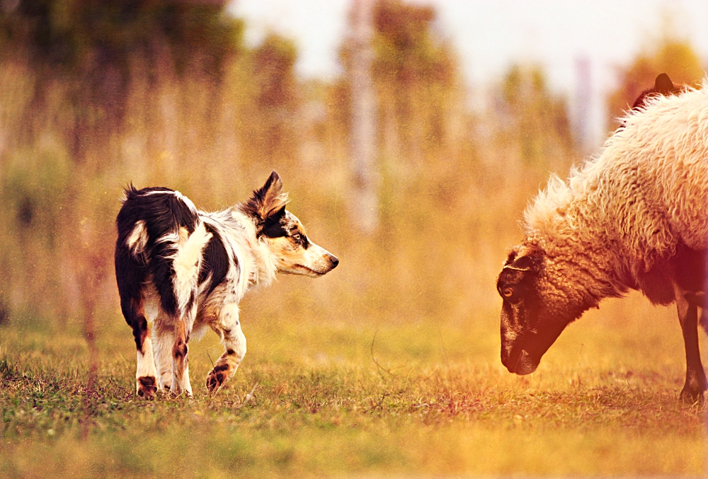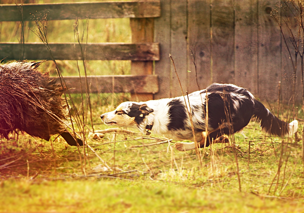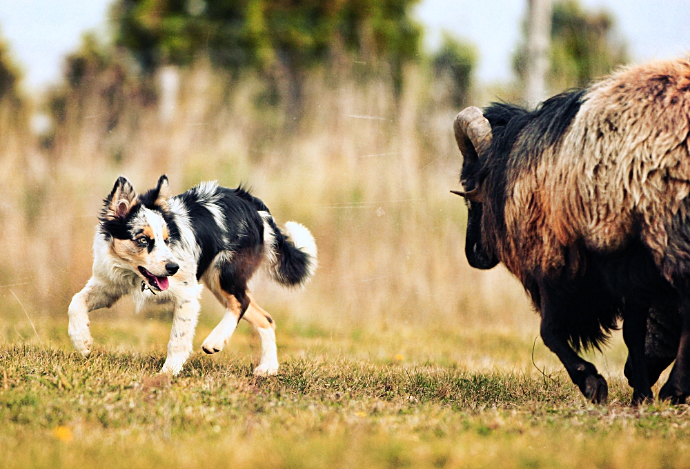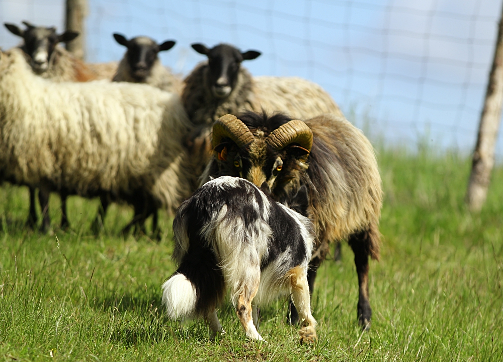 pasterstwo – Yoga niczego się nie boi! i mimo, że jest niedużą suczką, potrafi wleźć pod barana jeśli trzeba. Wyciągnie go z zagrody, zapędzi spowrotem;) owce się jej bardzo słuchają. Chyba mają o niej dobre zdanie…