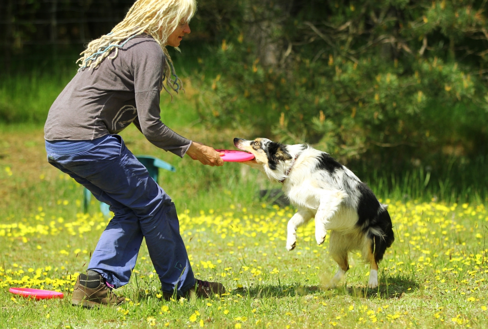 frisbee – powolutku zaczynamy. Yoga świetnie skupia się na aporcie. Ma naturalny aport i chętnie bawi się ze mną w dogfrisbee.