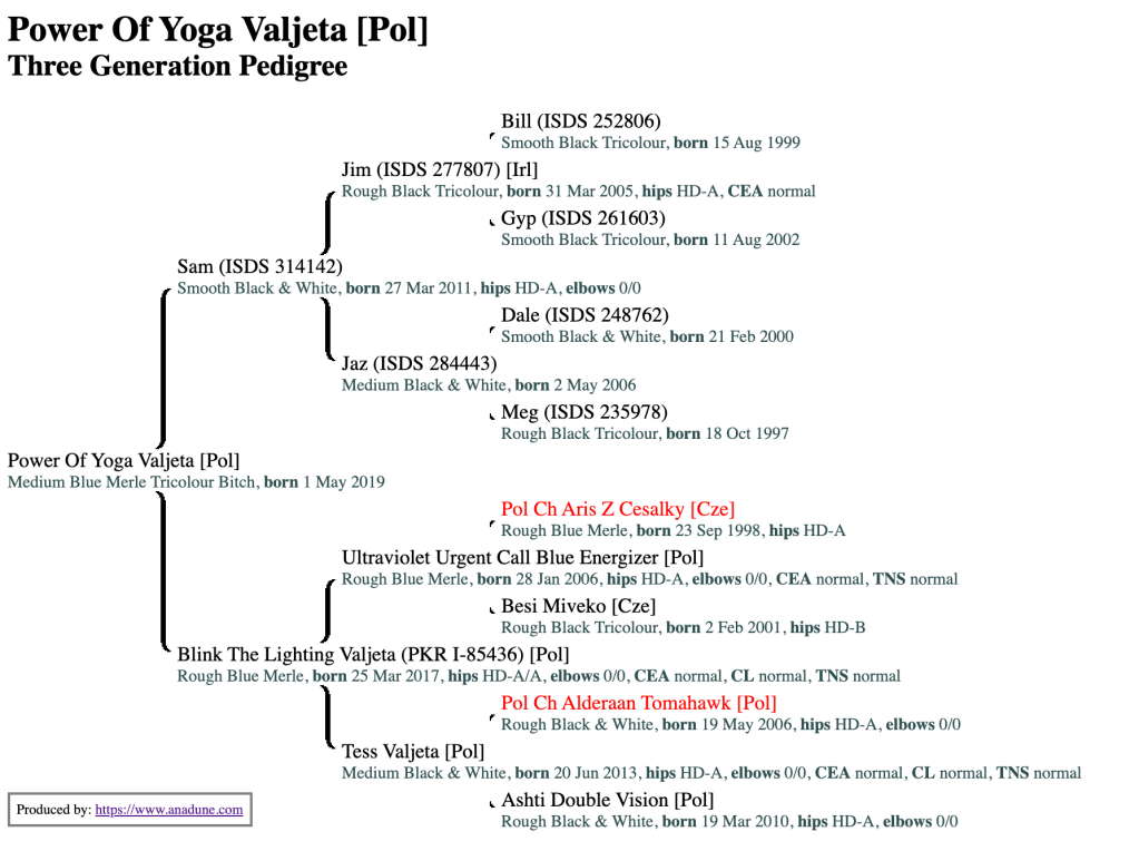 Ze strony mamy – Siri – mamy Ergiego – psa ratowniczego – ojca naszej Pati – dającego doskonałej klasy potomstwo i diabelca pod skórą 😉